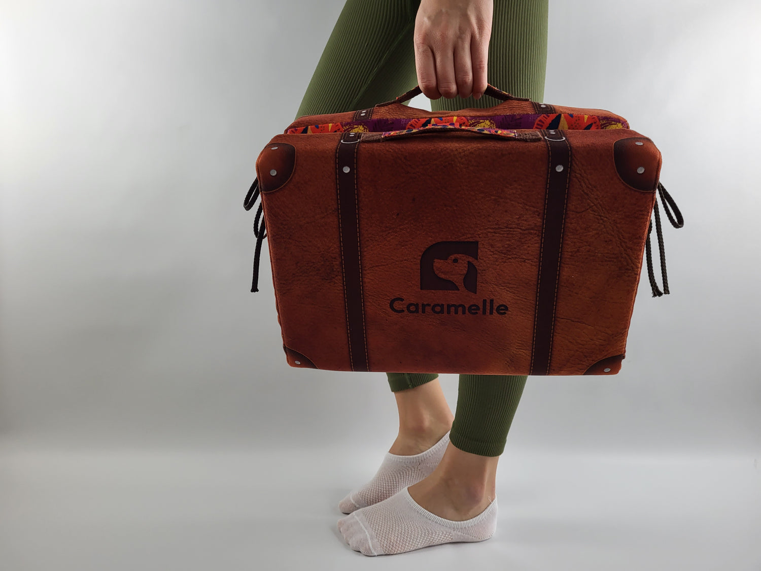 The look of a real vintage-style suitcase offers a pleasant laydown thanks to quality materials. Practical to take everywhere with its handles and compact size. When closed, it has a " trompe l'oeil " decoration made of reinforced straps and corners and it participates to the decoration of your interior thanks to its retro look.